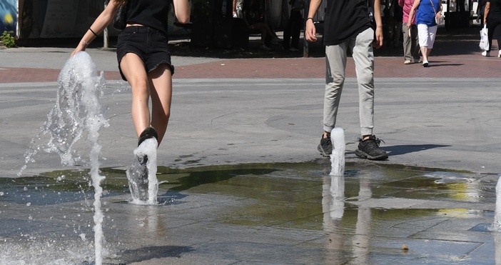 В разгара на горещината, температурите по Черноморието достигат над 35 градуса, а освежаващите струи вода на градските площи носят облекчение и радост на минувачите.