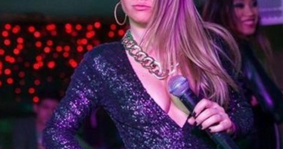 Караджова се надига на пръсти, за да целуне приятеля си на червения килим на хип-хоп наградите в София преди два месеца.