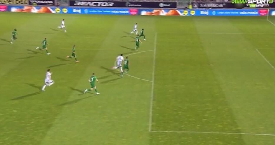 В 6-ата мин Дино Перич откри резултата с атрактивен гол. Защитникът при единоборство си вдигна с глава топката и от воле направи резултата 1:0 за гостите от Хърватия, предава 24 часа.