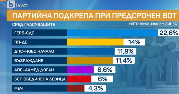 Маркет линкс: Пеевски вдига рейтинг, Радев - надолу, ГЕРБ отново първа сила