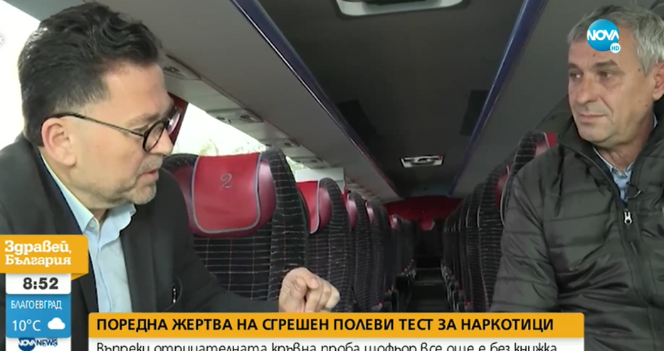 Поредна жертва на първоначално положителен полеви тест за наркотици. Припомняме случая, при който автобус с 20 пътници излезе от пътя и се обърна в канавката при 345-и километър на магистрала „Тракия”.