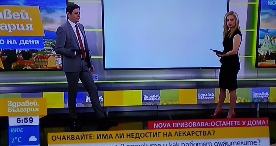 "Оказа се, че много хора могат да работят от вкъщи. Колегите от сайта на "Нова" още от петък са си по домовете и вършат дейността си от там. Нашият екип също се разделя на две части. Продуцентите са вече на две групи, едните са сега тук, а другите са си вкъщи и ще се разменят другата седмица. Включително и ние с Ади няма да водим другата седмица. Изненада. Другата седмица другит колеги ще водят. Репортерите също са разделени на две групи. Наистина има значение каквото може да направи всеки един работодател и всеки един от нас да го направи, защото знаете, че има кошмарни кадри от Италия, а за съжаление и в Испания започва да става същото. Така че каквото можем ще направим", казаха водещите.