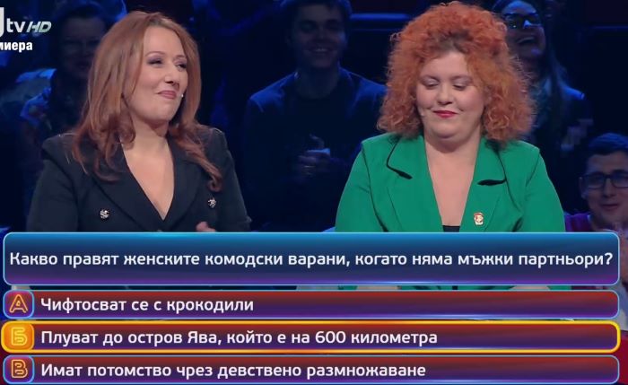След тази размяна на реплики за повечето зрители вече нямаше значение, какъв е верният отговор на въпроса. А той се оказа доста интересен - комодските варани зачеват девствено.