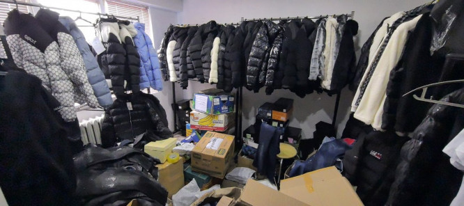 В апартамент в Шумен икономическите полицаи се натъкнали на множество дрехи, складирани в стаи в жилището. От апартамента в Шумен, от жилище във Велики Преслав, от два леки автомобила и гаражна клетка в Шумен били намерени иззети близо 1 000 стоки с лога на защитени марки.