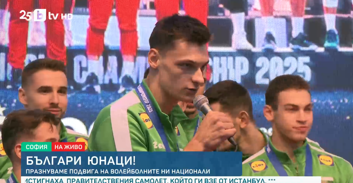 Това е България и след като лично аз го виждам това, съм сигурен, аз и целият отбор, че няма как следващо лято да не искам отново да сте тук и да не искам отново да печелим медали за България. Обичаме ви от сърце. Благодаря ви много. Обещаваме ви едно - че докато играем за България абсолютно всеки един от нас е готов да умре на игрището. Надявам се скоро да ви видим отново тук. Благодаря от сърце, заяви прочувствено Мони.