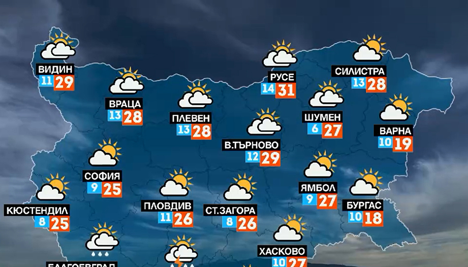 Времето утре ще е с усещане за истинско лято в равнинната част на страната с температури до 30 градуса, съобщи синоптикът на Нова телевизия Николай Василковски.