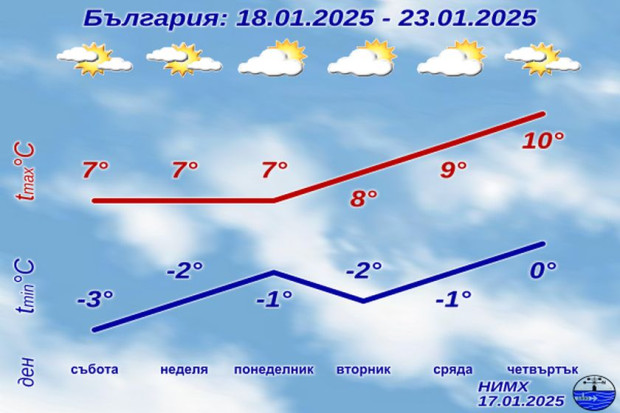 - минималните - между минус 2° и 3°, а максималните - между 9° и 14°, по-ниски ще се задържат в местата с трайна мъгла.