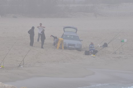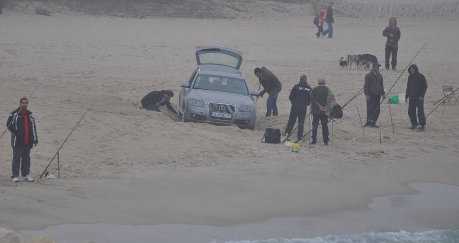 На Южния плаж: "Ауди" заседна на 2 метра от брега, разкопават го (снимки)