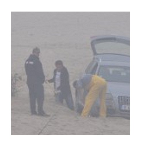 Няколко човека с лопати се опитваха да направят излизането на автомобила от плажа възможно.