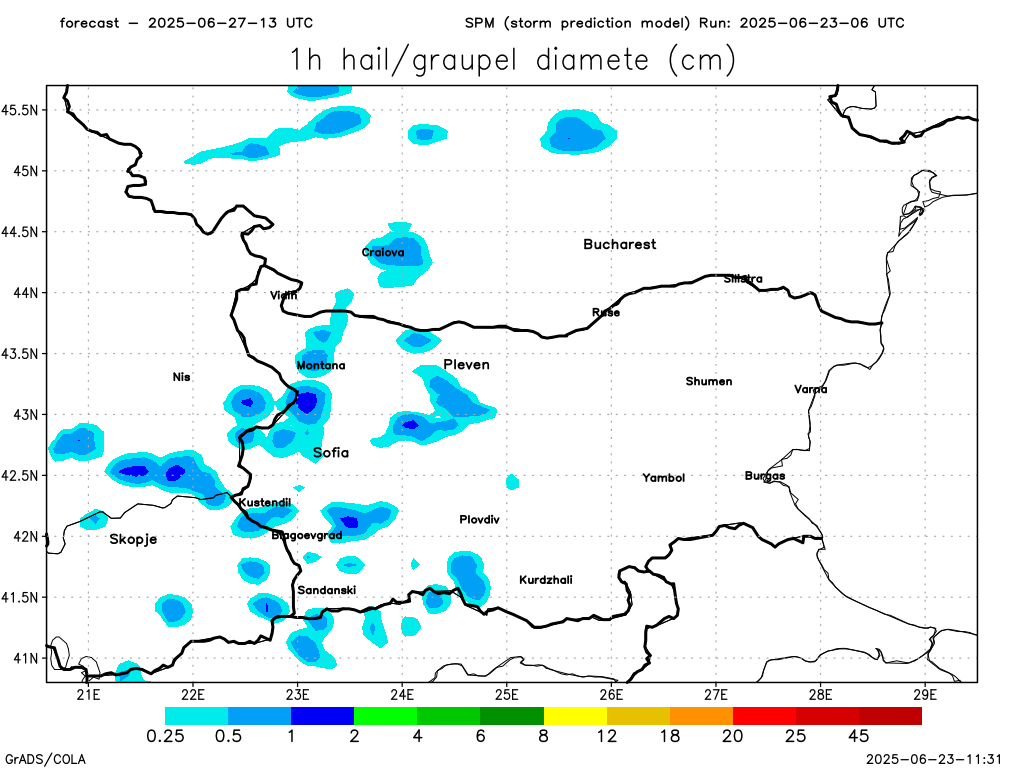 Очакваната дебелина на градушката, по данни на SPM