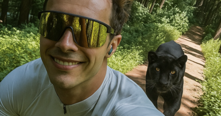 Вижда се, че кара колело, а зад него е...черната пантера.