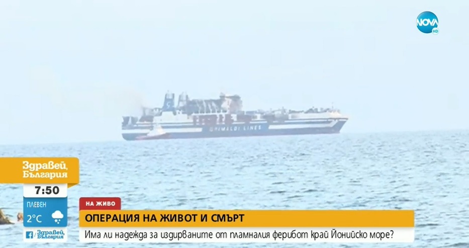 Тяло на мъж бе намерено в изгорелия ферибот, съобщава "Нова телевизия".