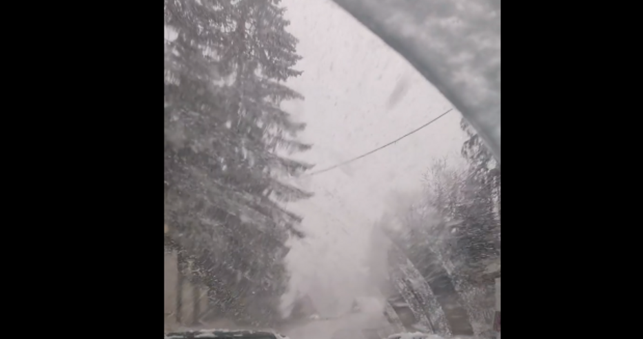 В района на популярния зимен курорт обаче захлаждането е съпроводено и с типично зимен силен снеговалеж.