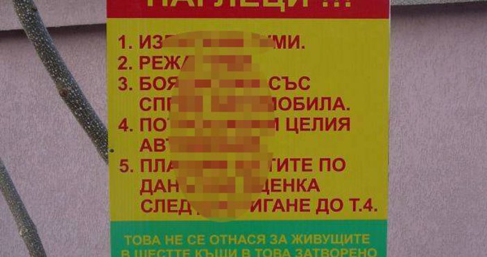 Тази жена обаче е стигнала до крайност, в опит да защити тротоара пред дома си. Обявата е категорична и доста заплашителна. Ако тя не свърши работа, няма какво!