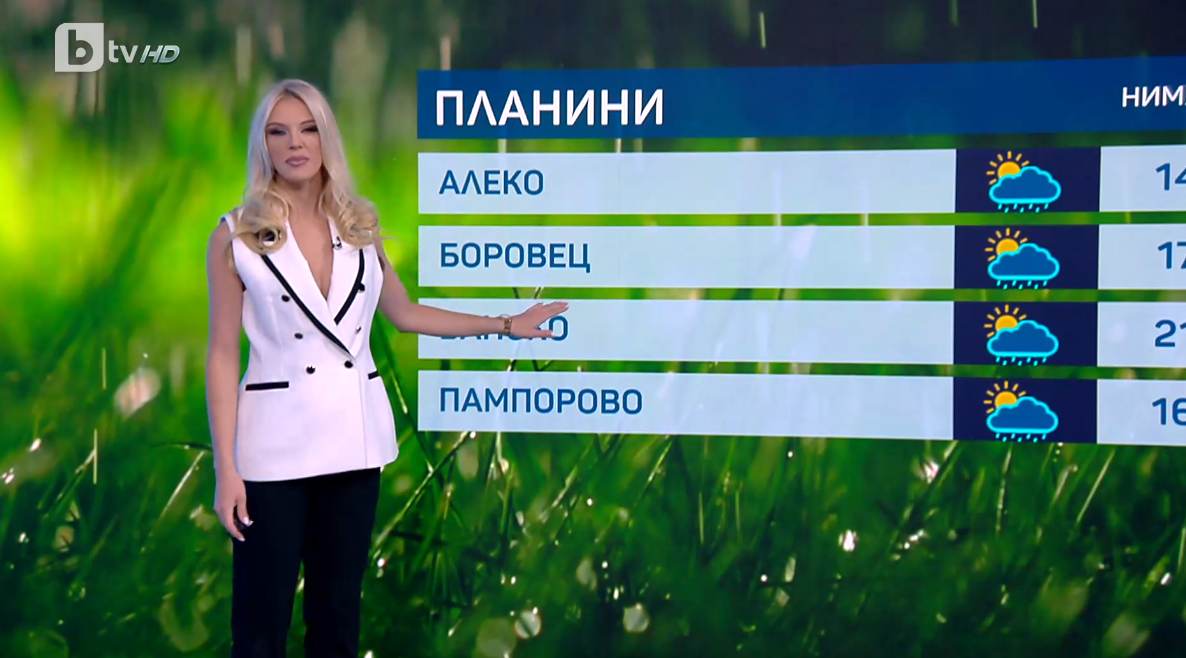 През почивните дни ни очаква дъждовно и по-хладно време. Валежите ще бъдат на повече места и по-значителни. Очакват се гръмотевични бури, ще има и условия за градушки, освен това очакваме и чувствително понижение на температурите, каза Натали Трифонова.