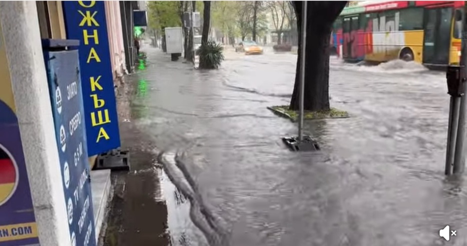 На бул. Мария Луиза водата е заляла и тротоарите.