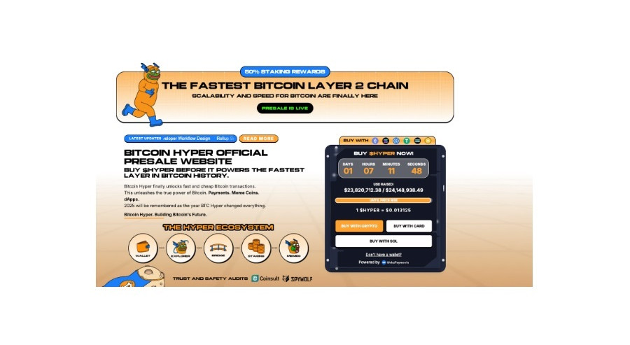 Според анализаторите от 99Bitcoins, $HYPER е „една от най-добрите крипто предпродажби за покупка“ заради огромния си потенциал след листването. Досега са набрани над $23.8 милиона, токените се продават по $0.013125, а залагането предлага 50% APY. Повече от 1 милиард токена вече са заключени, което говори за сериозно доверие от инвеститорите.