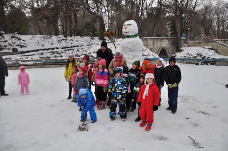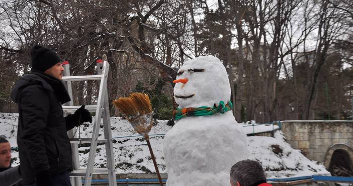 Най-големият снежен човек в Морската градина гордо стърчи насред езерото в детския кът. Около 3 метровата статуя събра малки и големи днес в ранния следобед там, където през топлите месеци на годината варненци и гости на града се возят с водни колелета. Нетрадиционното място беше избрано от организаторите, за да се види, че пространството е използваемо дори, когато е затрупано от сняг.