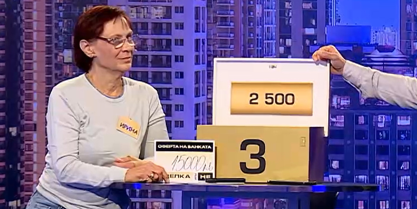 Ирина излезе с кутия №3. Отхвърли няколко оферти от банкера, които градираха по време на играта ѝ – 3300 лв., 3800 лв., 4000 лв., 4500 лв., 5000 лева.