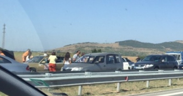 Зрители на бТВ сигнализираха за километрично задръстване по пътя за Гърция в района на язовир Дяково.