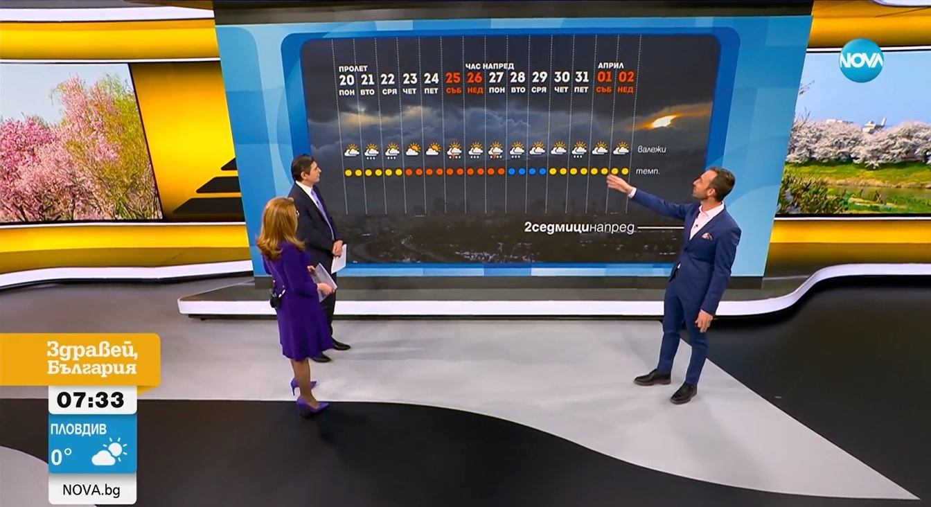 Синоптикът на "Нова телевизия" Николай Василковски направи двуседмична прогноза за времето.