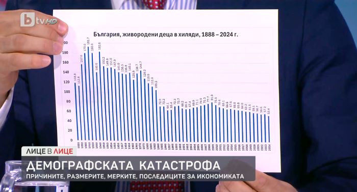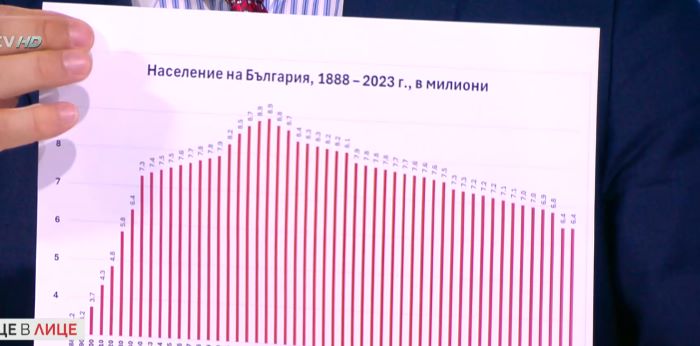Той показа таблици за населението и раждаемостта от Освобождението насам, които показва ясно демографската катастрофа.