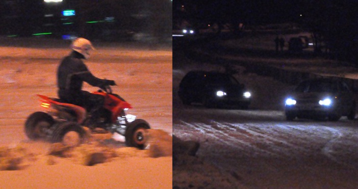 Нощен репортаж на Petel.bg: Дрифтъри, АТВ-та и сноубордисти плъзнаха по ледените улици (снимки и видео)
