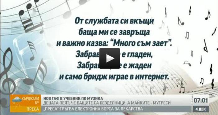 Песен в учебника по музика за 4 клас предизвика гнева на родители, заради посланията, които отправя, предаде ТВ7.