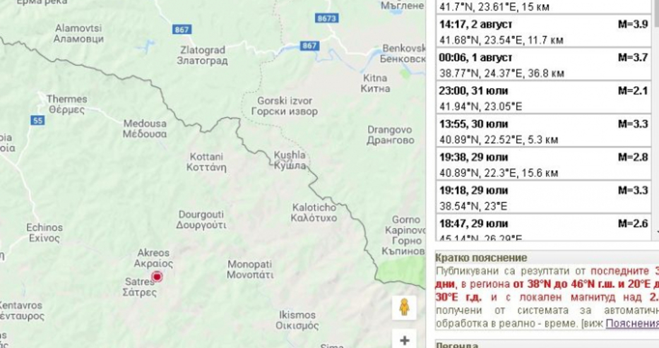 Епицентърът е на територията на Гърция до селището Сатрес.