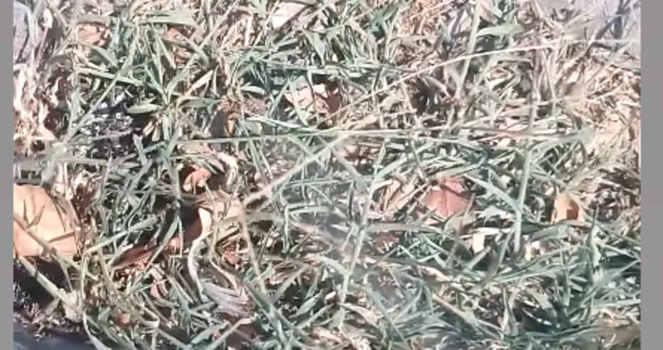 Гражданин показва как някой си е хвърлил фаса в трева.