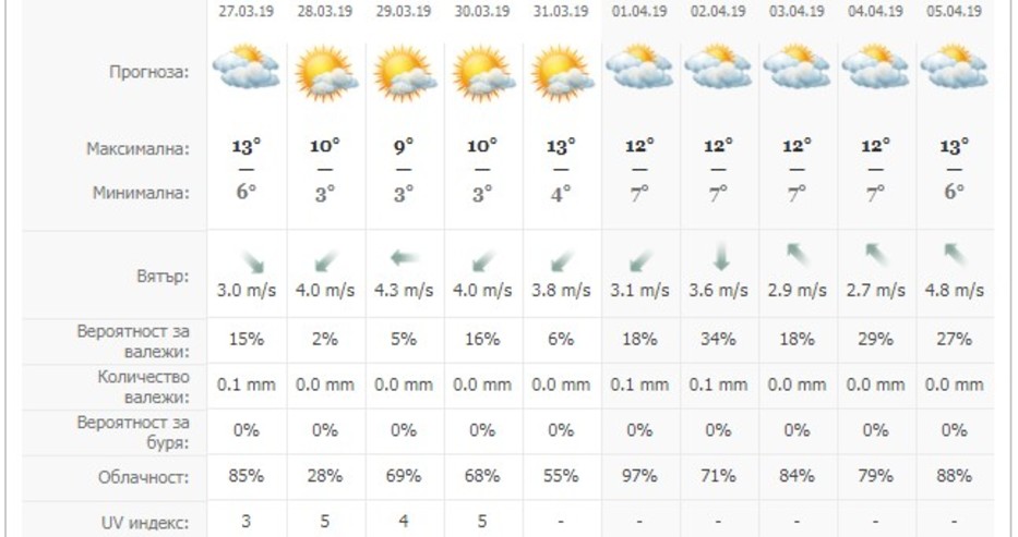 Дневните температури се понижават и минималните температури ще са между 3 и 8 градуса, а максималните - между 12 и 17 градуса.