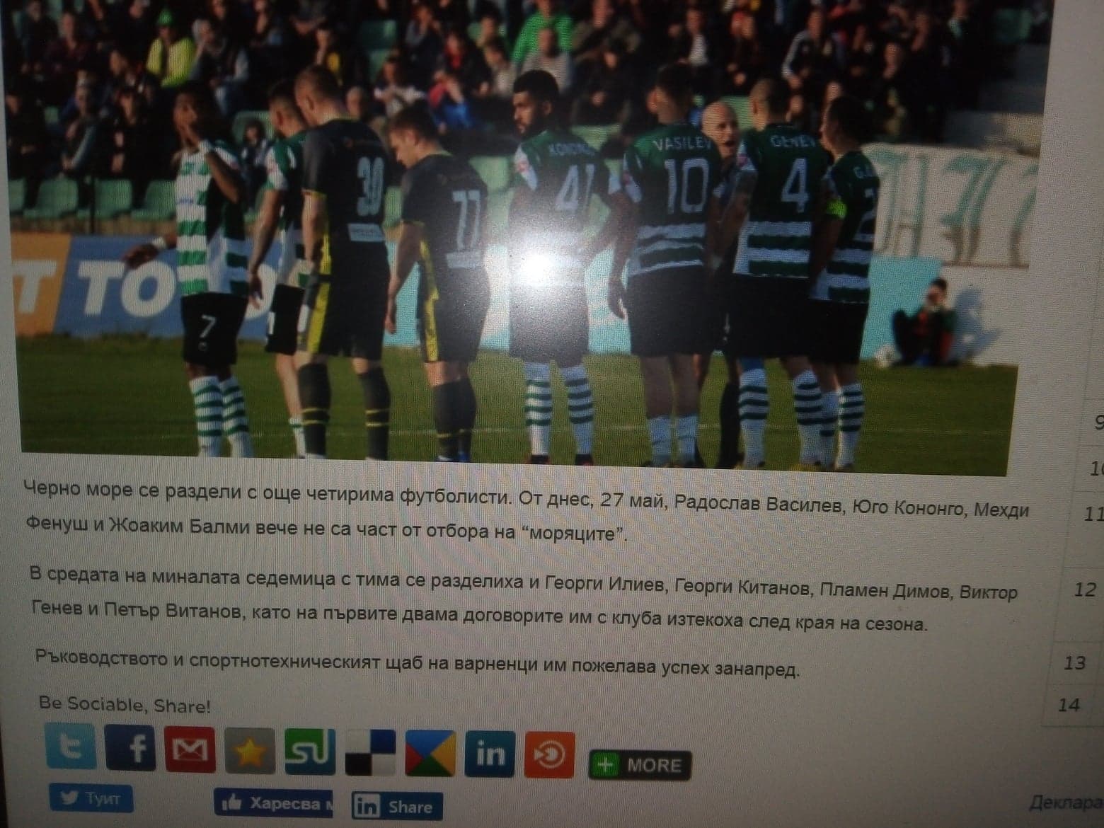 Това стана ясно от материал в клубния сайт днес сутринта, в който е написано, че миналата седмица "моряците" са се разделили с Георги Илиев, Георги Китанов, Пламен Димов, Виктор Генев и Петър Витанов.