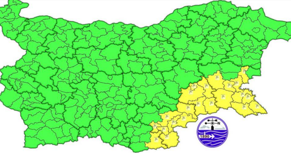 Синоптиците обявяват жълт предупредителен код за потенциално опасно време и силен вятър в 4 области на страната - Бургас, Ямбол, Хасково и Кърджали. Там се очаква да духа временно силен вятър от изток-североизток с пориви до 20-22 m/s.