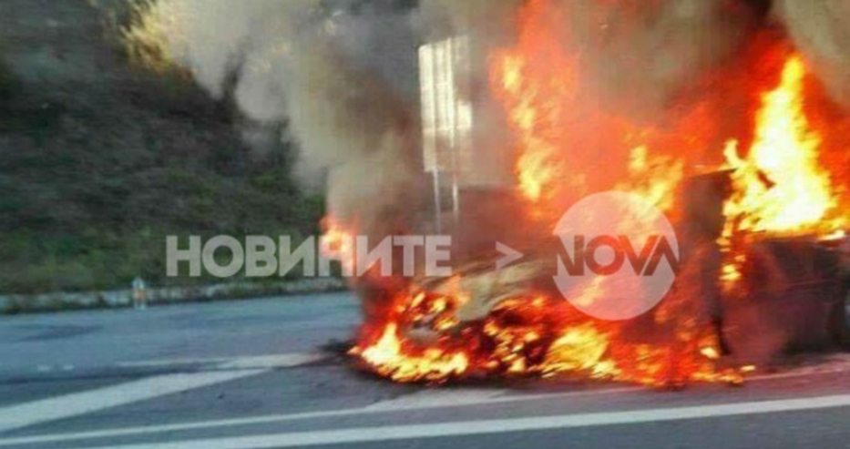 Пристигналият на мястото пожарен екип успял бързо да потуши пламъците. Те лумнали заради техническа неизправност на автомобила, уточниха от МВР. Движението в района беше временно ограничено. Образува се дълга колона от автомобили.