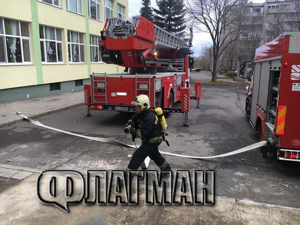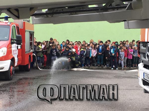 Няколко ученици бяха останали след алармата в класната стая, но с помощта на машините и бързата реакция на огнеборците бяха извадени невредими от сградата. Пожарникарите демонстрираха на по-малките как се борави с маркуча за вода.