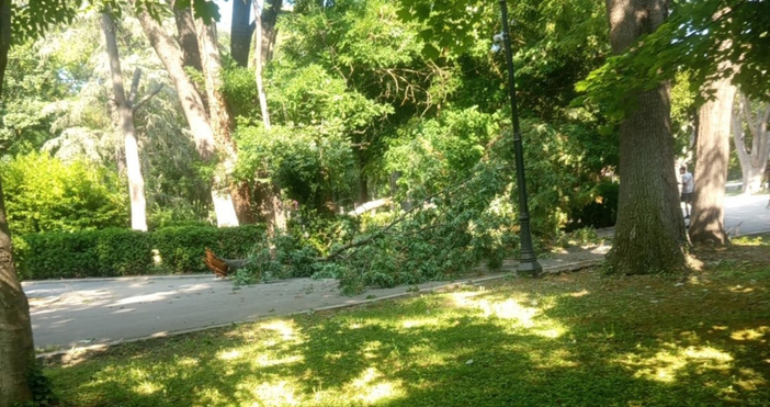 За паднал огромен клон в Морската градина на Варна алармира гражданин във фейсбук групата "Забелязано във Варна". Инцидентът е станал в района на Летния театър.