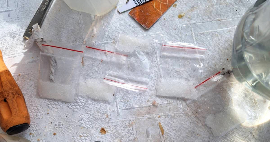 При огледа униформените откриват вещества и материали, използвани за производство на наркотици – две бутилки с кислол, бутилка с люспи за почистване, корселин, йод, ацетон, както и червено прахообразно вещество, идентифицирано като фосфор.
