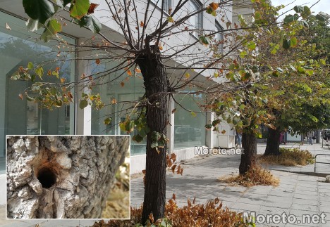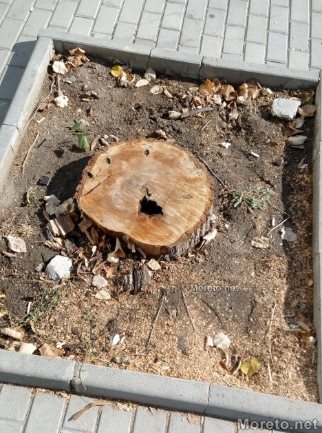 Трите дървета, за които Moreto.net писа миналата година, че умишлено са убити с нафта, днес вече са отсечени.