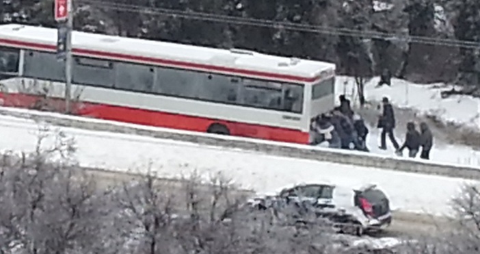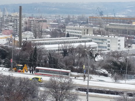 Пълен фарс във Варна: Пътници бутат заседнал автобус в снега, варненци мръзнат по спирките (Снимки на читател)