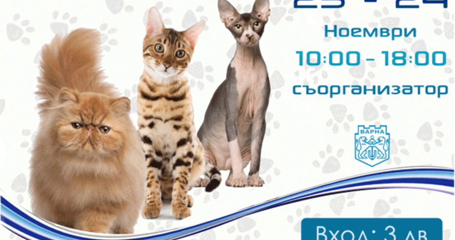 В събота от 11:00 ч. в зала „Младост” в Дворец на Културата и Спорта Варна е официалното отриване на „IX и X Mеждународна лицензирана изложба на котки” и награждаване на организираните от нас конкурси за деца.