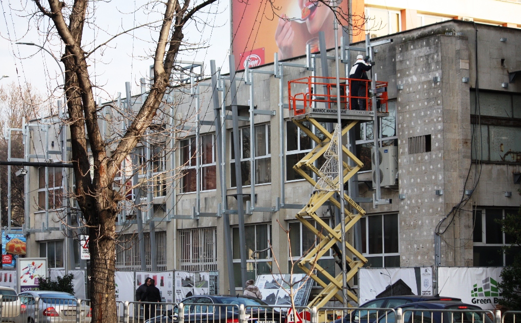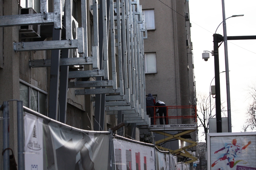 Вече е издигната конструкцията, определена като „комуникационен възел“, която ще дава директен достъп до покрива на сградата. Той пък трябва да бъде превърнат в открита тераса.