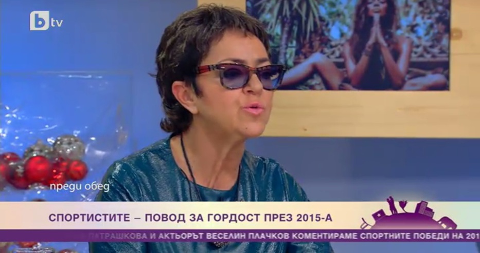 Популярната журналистка Кристина Патрашкова направи интересен коментар в предаването "Преди обед" по bTV. Тя и актьорът Веселин Плачков обсъждат в ефира спортните успехи на българите през 2015 г.