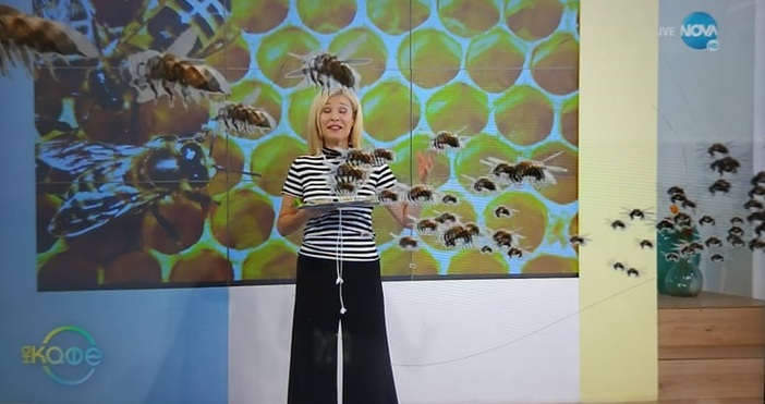 Причината е, че "днес е Свети Прокопий, покровител на пчелите, пчеларите, медопроизводителите, търговците на мед, така че честит празник, много мед да дават кошерите. Това са хората, които могат без проблем да си оближат ръцете. Мили ми колеги, тази сутрин съм ходила да вадя мед специално за вас", каза водещата, като се оказа, че пчелите в студиото са дигитални творения.