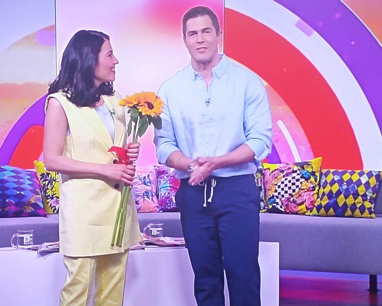 Първият й партньор днес е Иво Аръков, който влезе в ролята на Кадиев. Той дойде в студиото с букет от слънчогледи, които подари на екранната си партньорка.