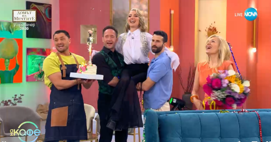 Бурни емоции и висок адреналин вдигнаха градусите на настроението в „На кафе“. Поводът бе рождения ден на Михаела Маринова, която бе посрещната подобаващо от Гала и нейните панелисти с торта и фойерверки. Дарин Ангелов и Георги Блажев пък я вдигнаха на ръце, и заедно с вксички други изпяха Хепи Бърдей.
