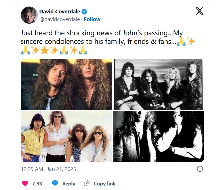 Дейвид Ковърдейл отдаде почит на Сайкс като сподели редица снимки заедно с него в разцвета на Whitesnake. „Току-що чух шокиращата новина за смъртта на Джон. Моите искрени съболезнования на неговото семейство, приятели и феновe”, написа звездата.