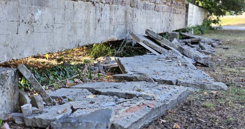 Нови паднали възпоменателни плочи пред Пантеона в Морската градина, които са се отлепили от стената и са безвъзвратно унищожени.