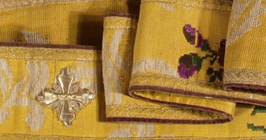 Дяконският пояс е ползван от Васил Левски в периода 1858 – 1861 г. Дълъг е 4,30 м и широк – 10,5 см. Изтъкан е в жълто и е украсен с растителни орнаменти – букети с цветя в лилаво и зелено. Между тях има кръстове, изработени от сърма. Двата края на колана са бродирани върху тъмночервено кадифе със сърма и завършват със сърмени ресни.
