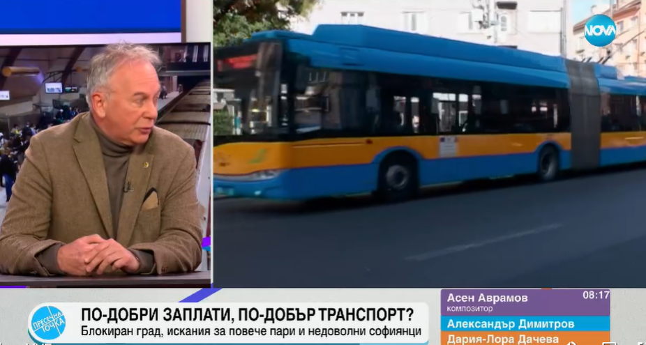 Блокадата в София бе широко обсъдена в наше публицистично предаване. Политолог веднага реагира, след като чу какво каза протестираща ватманка. Тя каза, че взима 3000 лева, но рядко, и с много дежурства и клас, докато начинаещ ватман не може да вземе заплата повече от 2400 лева.