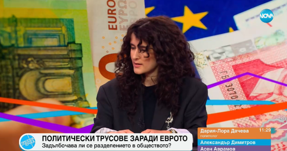 В никакъв случай не бих се включила в подобен референдум. Другото, което е, когато се огледаме, ние живеем в много трудно време, не само локално, но и международно. Не мисля, че в следващите 10-15 години ще има държава, която да бъде готова да влезе в еврозоната. Затова, колкото по-бързо това се случи, по-добре ще бъде и ще махнем лепенката, както се казва, допълни по Нова Тв Дария-Лора.